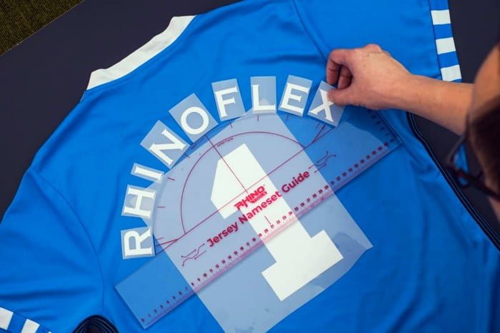 Tidak hanya itu, Rhino juga menghadirkan Jersey Nameset Guides yang berfungsi untuk menempatkan nameset polyflex pada bagian belakang baju jersey, dengan posisi melengkung. Hal ini tentunya akan memudahkan para pengusaha custom jersey dalam proses produksi.