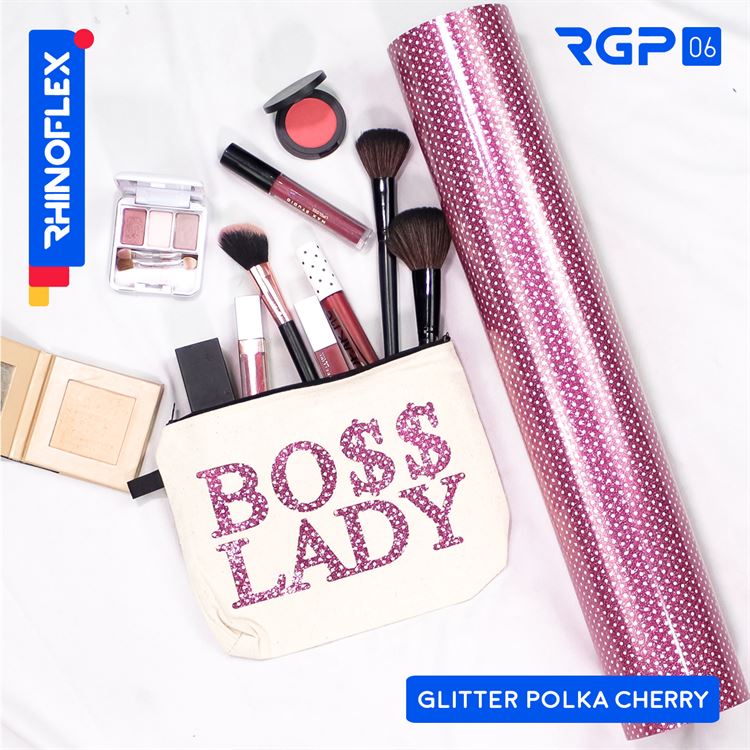 Rhinoflex glitter polka, varian baru ini merupakan jenis polyflex glitter dengan pola polkadot di sekelililngnya. Tekstur dari bahan glitter inipun sama dengan Rhinoflex glitter pada umumnya, namun terdapat lubang-lubang kecil di seluruh bagian bahan.