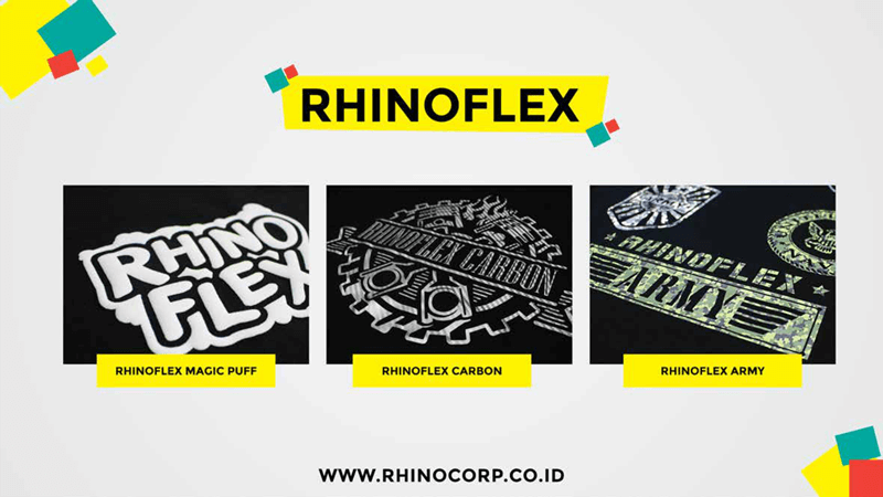 Jenis Rhinoflex terbaru dapat meningkatkan tampilan dari produk yang kalian hasilkan, sehingga terlihat lebih berkelas dan mewah. Tidak hanya pada baju saja, jenis bahan ini juga cocok diaplikasikan pada aksesoris olahraga seperti tas ransel maupun tas duffle. Selain itu, bahan Rhinoflex ini juga aman loh untuk disetrika, jadi tidak perlu khawatir soal perawatannya.